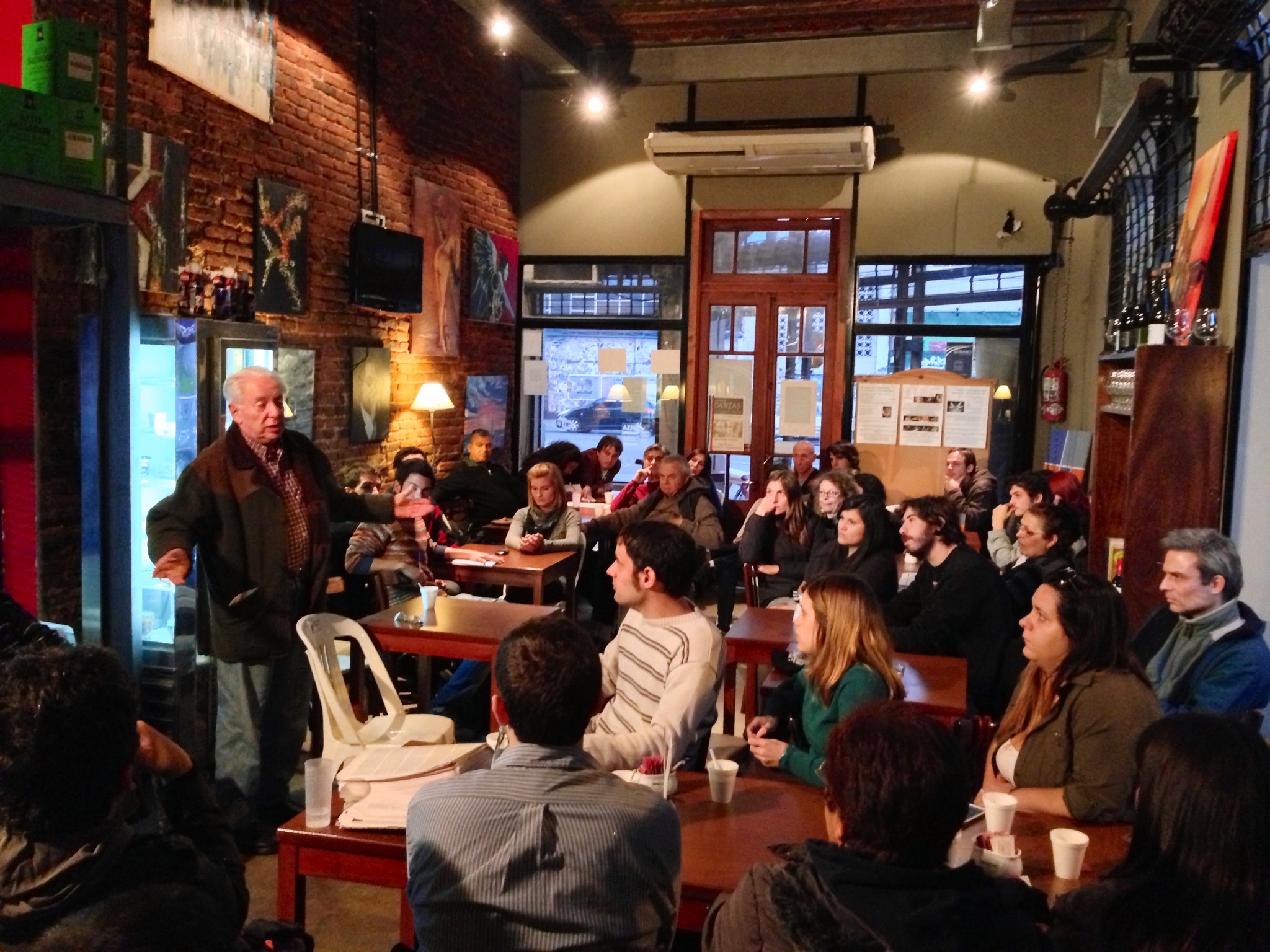Durante el sábado por la tarde Jorge Altamira, candidato a diputado del Frente de Izquierda por la Ciudad de Buenos Aires, participó de una reunión organizada por vecinos del barrio de Caballito en un bar tradicional ubicado sobre la calle Rivadavia.