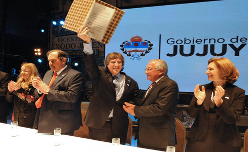 El acto, realizado en el club Gimnasia y Esgrima de San Salvador de Jujuy, comenzó con la interpretación del Himno Nacional con instrumentos autóctonos, tras lo cual los gobernadores de Jujuy, Eduardo Fellner; de Tucumán, José Alperovich, y de Salta, Juan Manuel Urtubey, firmaron el Acta de Declaración y Compromiso de la Gesta Bicentenaria del Norte Argentino.