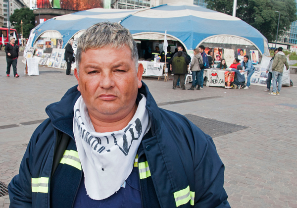 El hombre explicó que la medida de fuerza, por la cual se instaló una carpa enorme en la plaza de la República, frente al Obelisco porteño, desde el 21 de abril, contempla una huelga de hambre líquida de diez personas que se turnan cada 5 días.