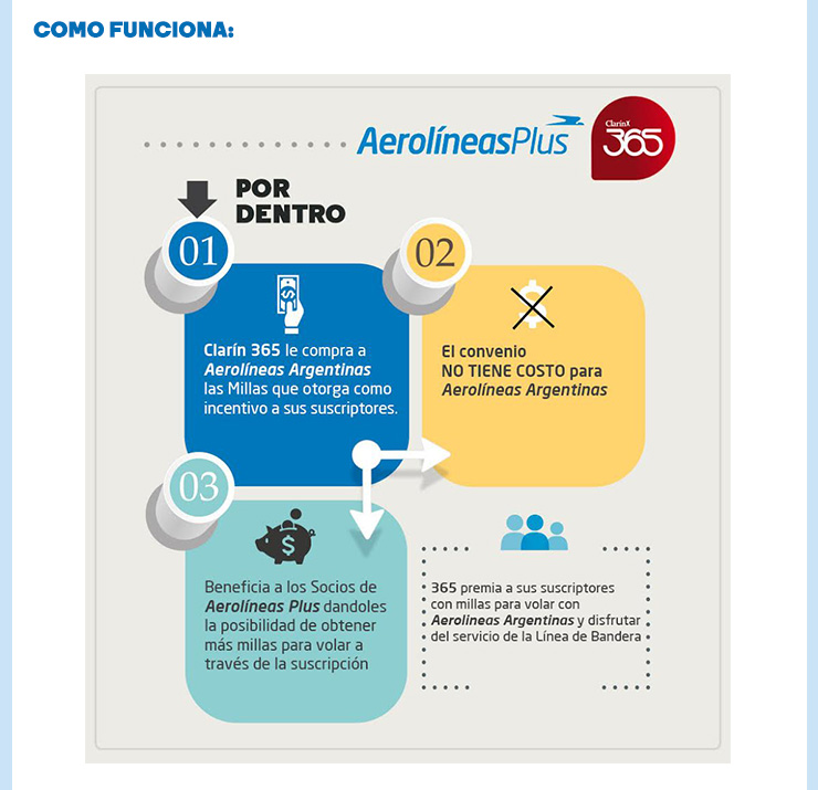 Estamos muy contentos de que Clarín haya elegido y comprado millas de Aerolíneas Plus para premiar a los suscriptores de su tarjeta de beneficios 365.