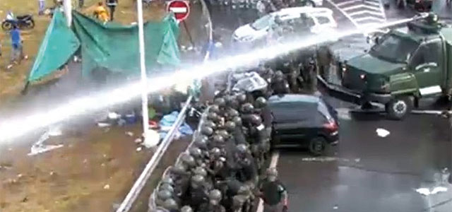 Pero al llegar Gendarmería se desató un enfrentamiento, con piedras, balas de goma, carros hidrantes y palazos se sucedieron en el lugar.