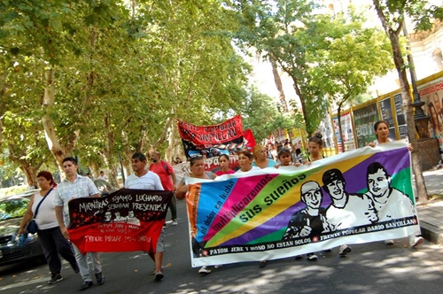 Con motivo de la conmemoración de los dos años del Triple Crimen de Villa Moreno, en Rosario, donde fueron asesinados por sicarios Jere, Mono y Patóm, integrantes del Frente Popular Darío Santillán (FPDS), la organización realizó ayer una marcha de antorchas desde el Club Infantil Oroño (Presidente Quintana entre Dorrego y Moreno ) hasta los Tribunales Provinciales de Rosario ( Balcarce y Pellegrini).