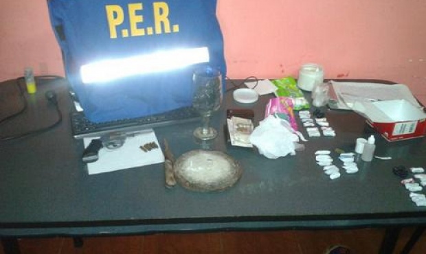 La Policía realizó un allanamiento en una vivienda de calle Salta, donde también funcionaba un comercio. Se secuestró marihuana, cocaína y un arma de fuego. La mayor parte de la droga estaba en la cartera de una joven, lista para realizar un delivery.