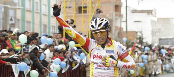 El podio de la sexta etapa de la Vuelta a Bolivia de Ciclismo fue todo para ciclistas nacionales, quienes coparon los primeros lugares del tramo que unió Vila Vila con El Alto (162 kilómetros). El ganador fue Jorge Quispe, de Pío Rico, quien cubrió el tramo en 4 horas 9 minutos 40 segundos. Sus escoltas fueron Herminio Cortez (4h09’52”) y Richard Acarapi (4h11’00”), quienes hicieron una gran carrera. Lo que no cambia es el primer lugar de la clasificación general, en la que el venezolano Carlos Galviz (Lotería del Táchira) manda con un registro de 24 horas 27 minutos y 17 segundos. Muy cerca está el colombiano Gregorio Ladino (Boyacá), 24h 28’04” y tercero es su compatriota Álvaro Gómez (Ebsa) 24h 28’07”. Fue una etapa a la medida de los bolivianos, quienes se adueñaron de las tres metas sprints. Desde el inicio tomaron los primeros lugares y manejaron el ritmo. Un grupo de 11 pedalistas se desprendió del resto. Horacio Gallardo fue el primer líder, cruzó primero la meta sprint de Koani, escoltado por Acarapi y el cruceño Peter Campero. En el camino recto hacia el El Alto, el común denominador fue el dominio nacional en las primeras casillas. En la segunda meta sprint de Patacamaya (a 86 kilómetros de la salida) se repitió el podio con los tres líderes. La diferencia sobre el resto aumentaba a medida que pasaban los metros, pero entre esa zona y El Tholar, Gallardo quedó rezagado, lo mismo sucedió con Campero. Pero se dio el repunte de Juan Cotumba, quien lo reemplazó en el trío de líderes y ganó la última meta sprint en El Tholar; el podio cambió de protagonistas, Acarapi fue segundo, y tercero, Luis Checa (Sinchi Wayra). Acto seguido, se desprendió del lote de ocho escoltas Wilber Juchani, pedaleó con todo hasta hacerse del primer lugar, pero esa condición no pasó de ser una anécdota pues rápidamente fue devorado por el pelotón y Acarapi tomó el liderato. Fue el escape definitivo del resto, pues la diferencia sobre los ocho siguientes era de 3 minutos con 44 segundos, mientras que Campero y Cotumba se quedaron con el resto. Fue en el último kilómetro que Jorge Quispe se escapó, los últimos 100 metros lo corrió solo en medio de un callejón humano que lo aplaudía y alentaba para encarar la recta final. El pedalista de Pío Rico cruzó primero la meta, casi de inmediato lo hizo Herminio Cortez, mientras que Acarapi, quien pinchó en los últimos cinco kilómetros y con ese desperfecto cruzó la meta, quedó un poco más atrás, pero no perdió tanto terreno como para que su tercer lugar corra peligro. El segundo pelotón fue de ocho ciclistas, seis nacionales y dos colombianos. La de ayer fue la etapa en la que los ciclistas nacionales tuvieron mejor producción en la competencia internacional. Los escaladores empiezan el ataque final El venezolano Carlos Galviz tendrá una lucha sin cuartel contra sus escoltas en las dos últimas etapas si quiere coronarse campeón de la tercera edición de la Vuelta a Bolivia de Ciclismo. El pedalista de Lotería del Táchira conserva el primer lugar de la clasificación general, pero tres colombianos le pisan los talones, un poco más atrás se ubica un ecuatoriano y luego el pedalista nacional Óscar Soliz, quienes hoy comenzarán el ataque final para adueñarse de la carrera que organiza el Grupo Fides. El crédito colombiano, uno de los mejores del continente, Gregorio Ladino (Boyacá) es su escolta y está a sólo 47 segundos del puntero. La etapa de hoy (con dos semietapas) puede ser decisiva para el futuro de ambos. La carrera se ha puesto al rojo vivo por los recientes resultados. Otros dos colombianos, ambos de Ebsa, están un poquito más atrás. La diferencia es de 50 segundos, y con seguridad que hoy se tratará de dar el golpe estratégico que les permita arrebatar el primer lugar a Galviz. Más atrás se ubica el ecuatoriano Byron Guama, a 2’04”, nombre que habrá que tener en cuenta, y la sexta casilla es para Óscar Soliz, pero tendrá que extremar recursos para ganar, pues con sus 24 horas 31 minutos y 29 segundos en la clasificación general se ubica a 4’12” del líder. La séptima etapa tiene dos partes, la primera entre Obrajes y San Pablo de Tiquina, y la segunda, entre San Pedro de Tiquina y Copacabana, sobre un recorrido total de 156 kilómetros. La primera semietapa empezará a las 07.30 desde la plaza de la Loba en Obrajes y San Pablo de Tiquina, sobre un recorrido de 116 kilómetros. Entre otras calles y avenidas, la carrera pasará por dos de los Puentes Trillizos, recientemente inaugurados, en los que se unirá Alto Obrajes y San Jorge, para luego tomar la avenida Arce. Además, se accederá al túnel del mercado Lanza. Esta primera semietapa incluye tres metas montaña y un sprint. Las metas montañas se ubicaron en la avenida Perú, kilómetro 9,4 del recorrido y catalogado como de segunda categoría; la segunda, en la Ceja de El Alto, primera categoría, y la tercera, en Jancko Amayo (kilómetro 114), tercera categoría, dos kilómetros antes de la meta. El punto con menor altitud se sitúa en obrajes, a 3.323 metros sobre el nivel del mar (msnm), y el más alto, en la avenida Juan Pablo II, a 4.082 msnm. La segunda semietapa se pondrá en marcha a partir de las 14.30 desde la plaza de San Pedro de Tiquina y tendrá como destino final la plaza de Copacabana, en un recorrido de 40 kilómetros. El tramo incluye dos metas montaña y un sprint. En Tito Yupanqui I se ubica la primera meta montaña (km 9), y la segunda en Tocopa (km 28). El único sprint de este tramo se ubica en Tito Yupanqui II, en el kilómetro 15. El punto de menor altitud es Tiquina (3.825 msnm), y el más alto, en Tocopa (4.251 msnm), de acuerdo con datos oficiales. Las frase «Faltando unos tres kilómetros saltamos con Jorge (Quispe), y faltando un kilómetro él se adelantó. Para nosotros es un logro haber acabado tres en el podio, porque en Santa Cruz siempre ganaban los extranjeros”
