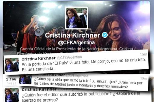 En el inicio de una serie de tweets, la Presidenta contó que, al desayunar junto a una «pila de diarios» se encontró con una «canallada», en referencia a la foto publicada por el matutino español.