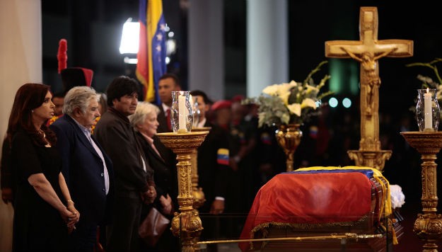 La ceremonia estuvo encabezada por el vicepresidente de Venezuela, Nicolás Maduro, y participaron además de Cristina, los presidentes de Uruguay, José Mujica y de Bolivia, Evo Morales. Juntos encabezaron la primera Guardia de Honor mientras se entonó las estrofas de himno nacional bolivariano.