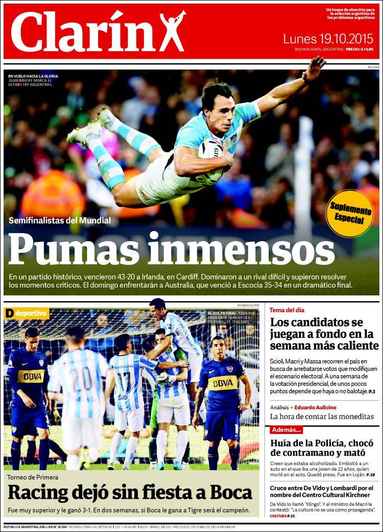Les dejamos, para que recorran, las portadas de los principales diarios argentinos.