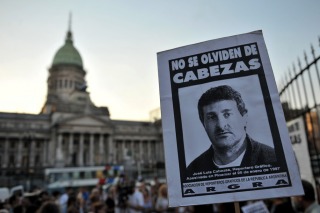 Fuentes judiciales y el abogado de González (42), Juan Martín Cerolini, dijeron que el condenado violó las condiciones de su libertad y podría ser enviado nuevamente a la cárcel de Dolores. De acuerdo con lo que se probó en el juicio oral, González fue el encargado de obligar a Cabezas a arrodillarse para que fuera ejecutado de dos disparos en el cráneo, pero después de que se le bajara la condena fue liberado en febrero de 2005 tras el pago de una fianza. Hace once días, el 17 de marzo, González fue apresado en su casa de La Plata en el marco del operativo de la Policí¬a Federal denominado «Rola Fest», que desbarató una organización dedicada a la fabricación de pastillas de éxtasis que vendían en recitales y fiestas electrónicas. Los voceros consultados afirmaron que los pesquisas encontraron pruebas de que González representaba una ramificación de la banda dedicaba a la venta de cocaí¬na en la capital bonaerense, por lo que fue apresado y se le incautaron un revólver y una escopeta. Sin embargo, González presentó una identidad falsa al momento de ser arrestado y transcurrieron 10 dí¬as hasta que las autoridades pudieron determinar que en realidad se trataba del condenado por el caso Cabezas. Una fuente judicial explicó que, al advertir esto, el juzgado federal de Sergio Torres se comunicó con la Cámara de Dolores, que condenó a González y al resto de los imputados por el homicidio del fotógrafo de la revista «Noticias». Debido a que el imputado gozaba de libertad condicional, el jueves la Cámara resolvió suspender provisoriamente el beneficio y dio vista a a la fiscalía general de Dolores, a su defensor y solicitó informes al Patronato de Liberados sobre cuál era su conducta. Una vez que cada parte emita su opinión y se reciban los informes, la Cámara decidirá si corresponde que González continúe cumpliendo la pena de perpetua en prisión y mientras tanto está a disposición de ese tribunal y del juzgado de Torres. El vocero explicó que cuando la sentencia a perpetua quedó firme en la Corte Suprema de Justicia de la Nación, González llevaba cumplidos alrededor de 20 años de cárcel sumando los que estuvo en prisión y por la aplicación de la «ley del 2×1» vigente cuando fue detenido. En tanto, según establece el Código Penal, el tiempo que pasó en libertad condicional no se tiene en cuenta para el cómputo de la pena si cometió un nuevo delito, aunque por ahora se trata solo de una detención, ya que no hay una condena. González integraba una banda conocida como «Los Horneros», oriunda de Los Hornos, La Plata, que la madrugada del 25 de enero de 1997 capturó a Cabezas a la salida de la fiesta de cumpleaños del empresario postal Oscar Andreani en Pinamar. En medio de un operativo clandestino supervisado por los policí¬as Aní¬bal Luna y Sergio Camaratta, el fotógrafo fue conducido hasta una cava de un camino rural de General Madariaga, donde el policí¬a Gustavo Prellezo lo asesinó de dos disparos en la cabeza e incendió su cuerpo dentro del auto que utilizaba para la cobertura periodística de la temporada de verano. Tras una compleja investigación criminal, el juez de Dolores que instruyó la causa, José Luis Macchi, determinó que el empresario fallecido Alfredo Yabrán fue el autor intelectual «mediato» del crimen de Cabezas y su jefe de custodia, el ex sargento del Ejército, Gregorio Rí¬os, el inmediato. La «Banda de los Horneros» fue condenada en febrero de 2000 por la Cámara de Dolores a prisión perpetua, en un debate en el que, además, recibieron reclusión perpetua Prellezo, Luna, Camaratta, y Rí¬os. En noviembre de 2003, el Tribunal de Casación bonaerense redujo significativamente las condenas impuestas y, gracias a la ley del «2×1» entonces vigente, «Los Horneros», con excepción de Héctor Retana que murió en la cárcel, fueron beneficiados con morigeraciones de la prisión. No obstante, Braga y Auge violaron las condiciones para permanecer en arresto domiciliario, por lo que el beneficio fue revocado en diciembre de 2007 y volvieron a la cárcel.