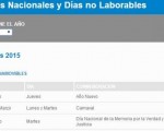 El Ministerio del Interior difundió el cronograma para el año en 2015. Habrá 15 feriados, dos feriados puente y 10 fines de semana largos, dos más que en 2014.
