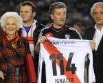En la previa del encuentro entre River y Tigre, el nieto de la titular de las Abuelas de Plaza de Mayo saludó al plantel y luego salió al campo de juego, donde recibió una plaqueta y una camiseta con la inscripción 114, en referencia a su identidad restituida.