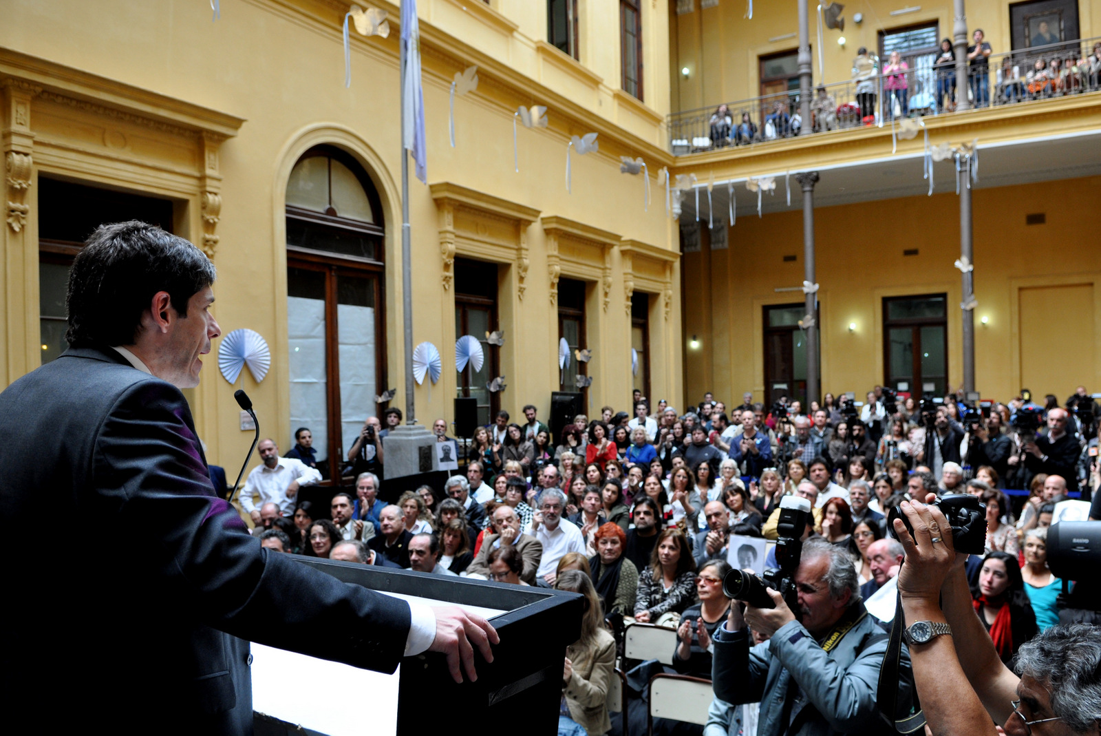 El jefe de Gabinete, Juan Manuel Abal Medina, encabezó un acto de homenaje a alumnos de la Escuela Marianao Acosta desaparecidos en la dictadura militar.