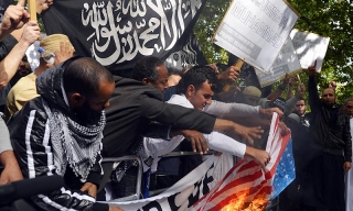 En Afganistán, unas 1.500 personas marcharon hoy por la ciudad oriental de Jalalabad al grito de «muerte a Estados Unidos», en la primera protesta en ese país en guerra por la película de Mahoma.