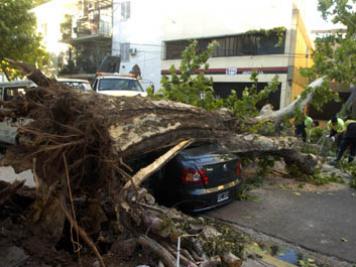 En el barrio porteño de Palermo, en la avenida Coronel Díaz y la calle Castex,  el árbol que cayó  aplastó a un vehículo que se encontraba en el lugar, sin provocar víctimas personales, informaron fuentes policiales y de la Guardia de Auxilio.