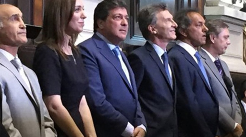 Juró previamente el vicegobernador electo, Daniel Salvador, y posteriormente le tomó juramento a Vidal, y le hizo entrega del diploma que la acredita como gobernadora bonaerense.
