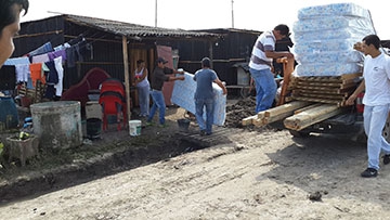 En ese lugar es donde diariamente trabajadoras sociales y profesionales de la salud realizan recorridas interiorizándose de la situación de los damnificados, asistiéndolos con mercaderías, colchones, camas, frazadas, vestimentas y en materia de salud.