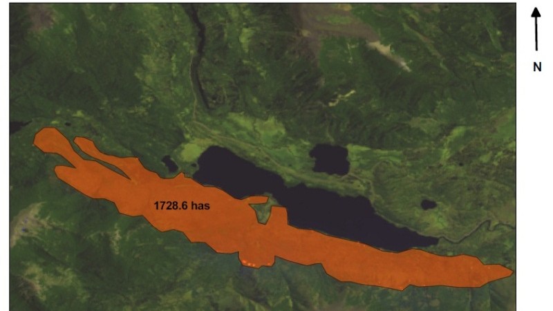 Lago Pilhué: se solicitó colaboración a las autoridades chilenas ya que el viento de este a oeste, más conocido como “Puelche”, llevaría el fuego al país vecino.