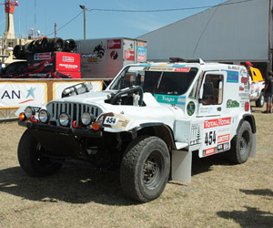 El vehículo -especialmente adaptado para poder competir- es un ícono de los utilitarios todo terreno del país, donde lo fabricó Industrias Kaiser Argentina desde 1957 hasta 1970. Equipada con un motor Cherokee de 4 litros de cilindrada, el vehículo compite en la categoría T1 (los buggy) y lleva el número 454.