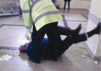 La escena fue fotografiada por la madre de una joven que también aguardaba atención y que sostuvo: «Es abuso de poder. Le pegaba en el piso y sin razón. El hombre nunca atentó contra la seguridad de los pacientes que estábamos ahí».