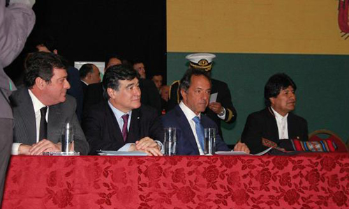 Scioli además resaltó: «Con Evo, Lula y Néstor nos unen esos valores de las grandes transformaciones latinoamericanas» y expresó el «compromiso de un proyecto que prioriza a los más humildes en la lucha contra la desigualdad».