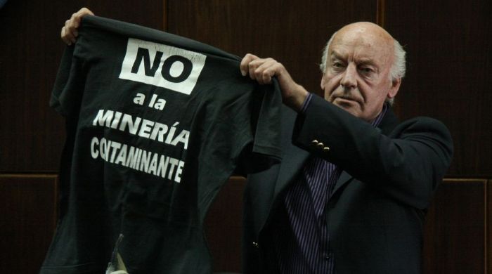 La tradicional exposición magistral de los nuevos Doctorados la comenzó Galeano -en coincidencia con el Día Internacional del Agua, que se celebró ayer- con un “homenaje a los militantes del agua aquí y en otros sitios, contra los enemigos del agua, empresas mineras que la contaminan, industria forestal que la seca y todos los que pecan y traicionan a la Naturaleza, convirtiendo al agua en un negocio y no un derecho de todos”. En el acto también estuvieron integrantes del la Asamblea del Agua, quienes le entregaron una camiseta de su campaña “No a la minería contaminante”.