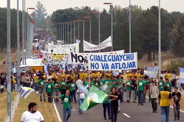 La marcha del domingo cuestiona como las anteriores a a Botnia, pero también el lema convocante invita a plantear las preocupaciones de otros colectivos sociales que vienen desde hace tiempo luchando por un ambiente sano, como las actividades mineras a cielo abierto.