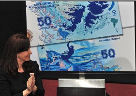 En el acto fue presentado el boceto del billete con el contorno de las Islas Malvinas, cuya emisión por parte de la Casa de la Moneda, según se anunció, tendrá curso legal por 6 meses.