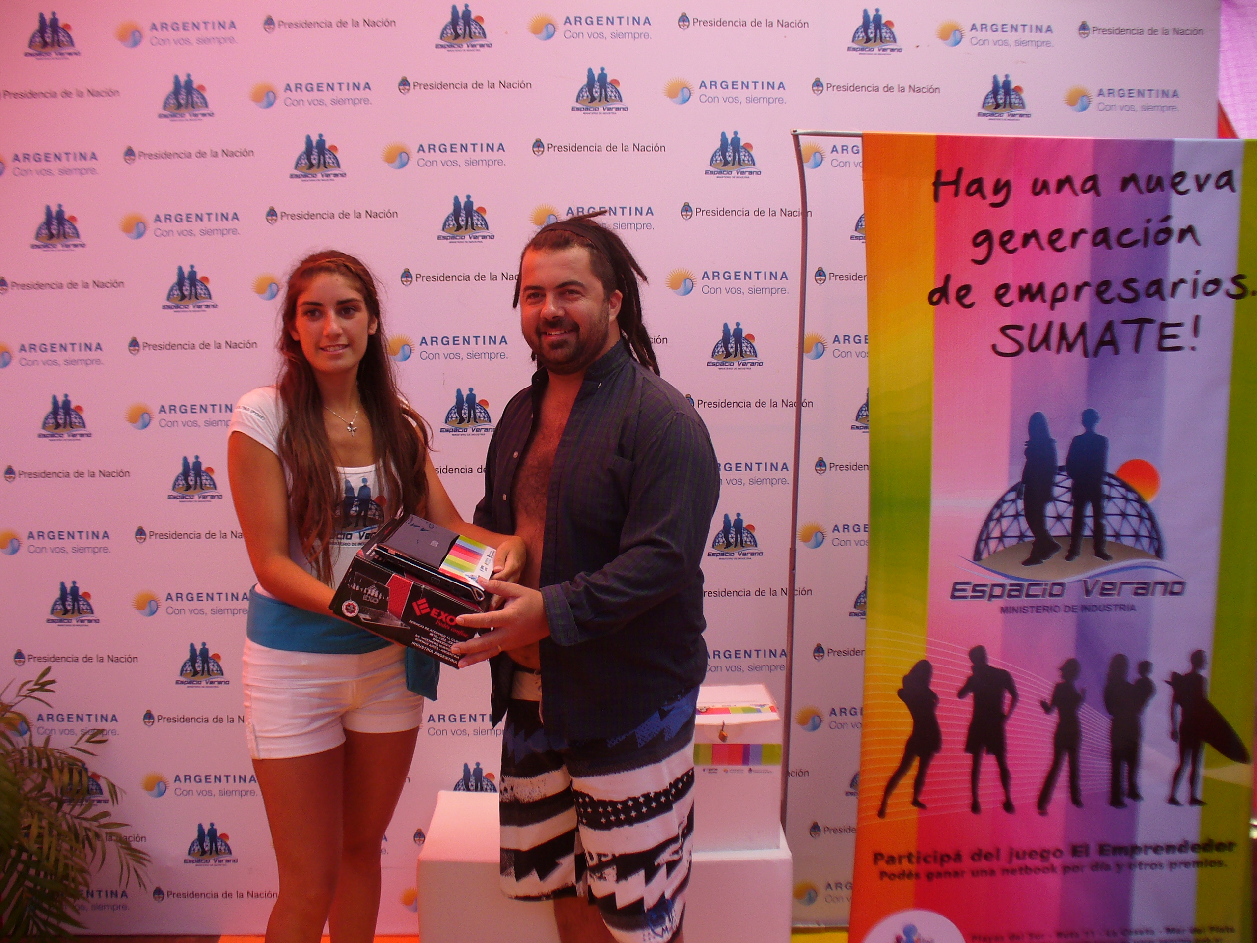 El Ministerio de Industria que conduce Debora Giorgi entregó una netbook al ganador del día en el juego “El Emprendedor”, instalado en el parador “La Caseta” de Mar del Platay que se lleva a cabo en el marco del programa del Gobierno Nacional “Siempre con Vos” .