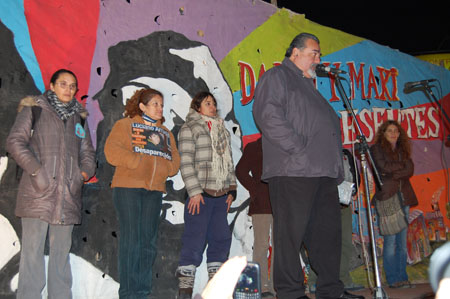“Hoy levantamos más alto que nunca las banderas de Darío y Maxi. Y vamos por el juicio a todos los responsables políticos. Así como también seguimos denunciando la complicidad civil de los medios de comunicación para incentivar y luego encubrir la masacre. Asimismo denunciamos la complicidad de este gobierno para no enjuiciar a los responsables políticos e intelectuales”, indicaron y para finalizar aseguraron: “Estamos acá para denunciar que bajo el gobierno de Cristina Fernández de Kirchner sigue la impunidad y la bonaerense corrupta y asesina. Con la mirada cómplice del sistema penitenciario bonaerense, el asesino Fanchiotti ha burlado su condena entrando y saliendo de la cárcel como patrón de estancia, caso que muestra que incluso los represores y genocidas presos tienen toda la impunidad para seguir funcionando con las redes represivas para atacar a los luchadores. Asimismo la impunidad y la persecución a los que luchan cuenta con la ayuda de las patotas de la burocracia sindical, apañadas por la política gubernamental y que ya se han cobrado varias víctimas, amedrentando persiguiendo y asesinando a nuestros compañeros”.