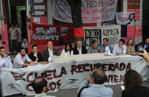 “Hace un mes que ocupamos la escuela y un mes que no tenemos respuesta de parte del gobierno porteño; sabemos que con voluntad política la escuela podría funcionar a la brevedad, exigimos una solución inmediata”, afirmó Damián Drescher, docente de ese distrito.