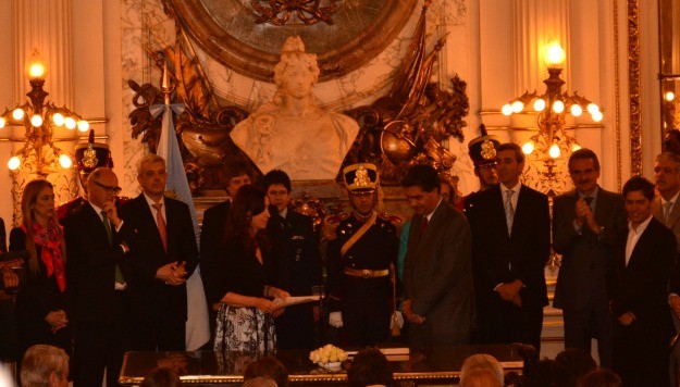 Asistieron al acto el vicepresidente Amado Boudou, el secretario general de la Presidencia, Oscar Parrilli; el secretario de Legal y Técnica, Carlos Zannini; los Ministros del Interior, Florencio Randazzo; de Defensa, Agustín Rossi; de Educación, Alberto Sileoni; de Seguridad, Alberto Puricelli; el ministro de Planificación, Julio De Vido; la ministra Débora Giorgi y el canciller Héctor Timerman. Participaron también el secretario de Seguridad, Sergio Berni; el titular de la AFIP, Ricardo Echegaray; y el flamante presidente del Banco Central de la República Argentina, Carlos Fábrega.