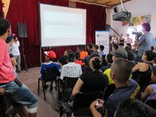 La ceremonia de apertura se llevó a cabo en el Cine Fraternidad del Sur, ubicado dentro del barrio. Más de 120 chicos y adolescentes presenciaron, junto a los funcionarios del Ministerio que dirige Nilda Garré, la proyección de un video que mostraba los talleres brindados a través del Programa y los trabajos de reparación de canchas de fútbol y espacios públicos que se realizaron.